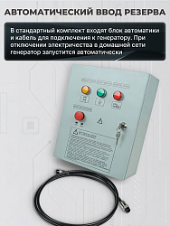 Преимуществом данной модели является наличие встроенной системы АВР (Автоматического Ввода Резерва). Это означает, что эта генераторная установка представляет собой готовое решение для организации бесперебойного питания: