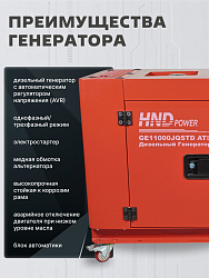 Новая модель HND GE11000JQSTD сочетает в себе удобство автоматического управления и универсальность выбора одно- и трёхфазного питания, делая её одним из лучших предложений на рынке автономных электростанций. Этот генератор станет незаменимым помощником при использовании в магазинах, больницах, гостиницах и офисах и везде, где необходима энергия, безопасность и спокойствие в случае аварийных ситуаций.