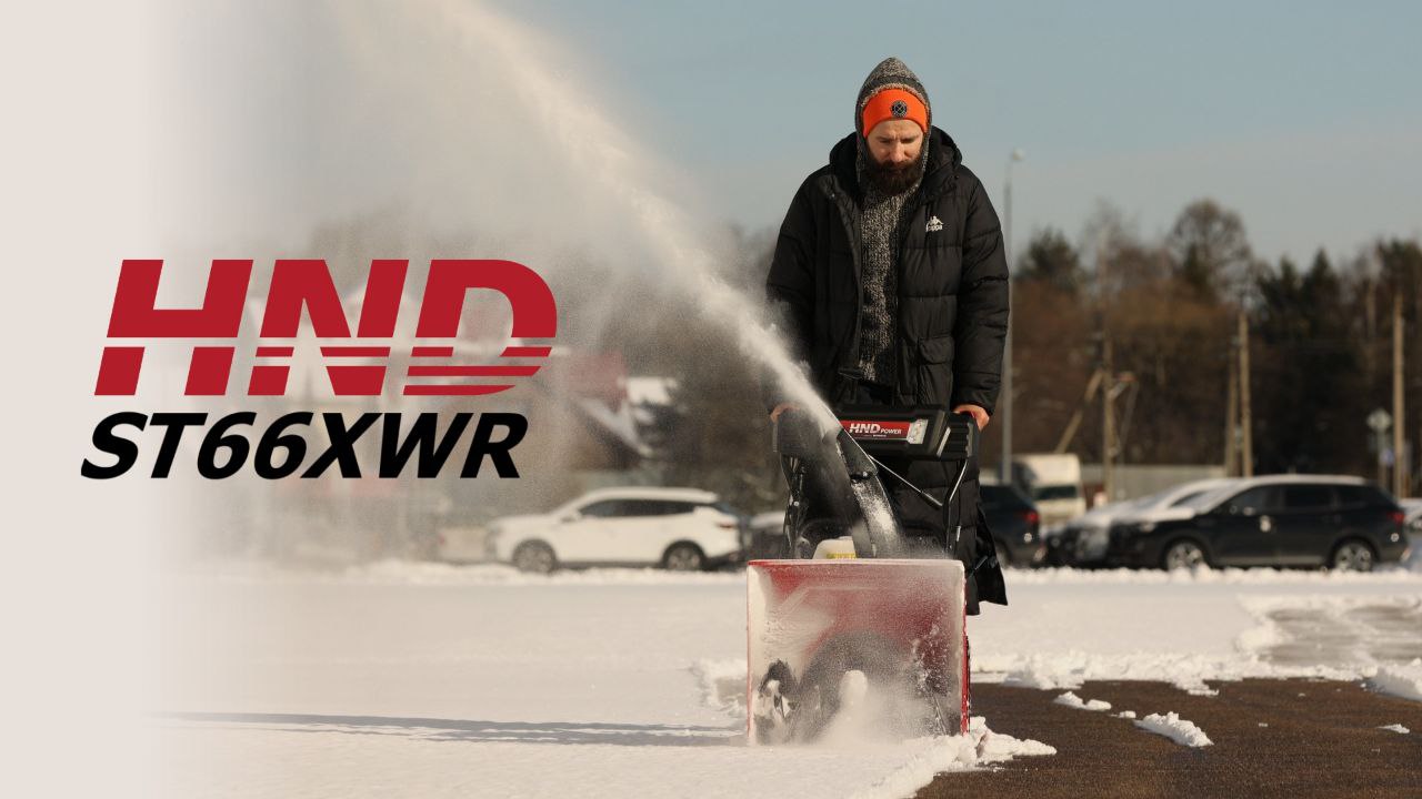 Бензиновый колесный снегоуборщик HND ST66XWR с шириной захвата снега 66 см. Может быть использован как для очистки дорожек и придомовой территории в частном секторе, так и для городских придомовых территорий с большими площадями уборки, придомовых парковок. Снегоуборщик оснащен двухступенчатой системой со стальным шнеком с зубцами и регулируемым желобом, что позволяет эффективно измельчать плотный снег и наст изо льда. В комплектацию ST66XWR входит светодиодная фара в виде полосы, расположенная на панели управления, что позволяет эффективно осуществлять работу в темное время суток и в условиях плохой видимости.