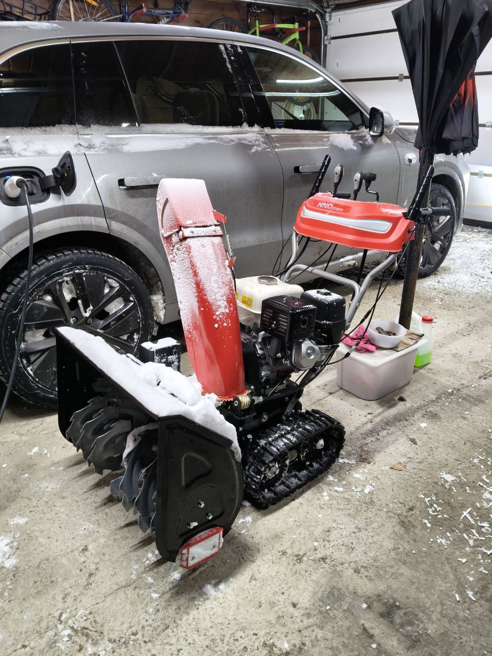 Снегоуборщик оборудован функцией контроля перемещения агрегата одной рукой, а вторая освобождается для регулировки направления и дальности выброса снега, включения фары и обогрева рукояток. Для удобства и легкости маневрирования снегоуборщик оснащен системой, позволяющей разблокировать дифференциал, для этого под рукоятками управления расположены специальные курки. Для маневрирования, нажимая курки, нет необходимости останавливаться.