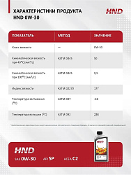 Описание моторное масло для автомобилей HND 0W-30, 4л